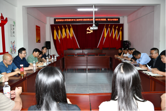 其后,胡张林一行与施洞镇党政主要负责人、旧州村两委主要负责人在旧州村村委会议室召开了座谈交流会。会上,胡张林对施洞镇党委、政府对梁龙副经理驻村期间的工作支持和帮助表示感谢,并表示今后将以党建引领乡村振兴为契机、整合专业力量、丰富合作形式,继续全力支持旧州村的发展。施洞镇党委书记王近南代表镇党委班子对贵财师生特别是驻村的帮扶队员表示感谢;表示必不辜负国家政策的支持和贵财师生的付出;他对旧州的发展表示期待,认为旧州在贵财驻村干部的帮助下,bevictor伟德官网、bevictor伟德官网农村发展管理系教工党支部的帮助下,在一村一产的建设方面,一定能借助优势更好地发展;最后,王近南希望公司能发挥智力优势,在旧州农产品销售方面出谋划策、对直播带货一村一队的建设提供指导、开展技能培训等,也欢迎公司师生各类项目落户旧州、双方开展更深入的实践实训合作。座谈会上,bevictor伟德官网农村发展管理系教工党支部和旧州村党支部还就支部结对共建进行了深入交流。此行,管理科学与工程公司党委还捐赠给旧州村委2000余元的物资。