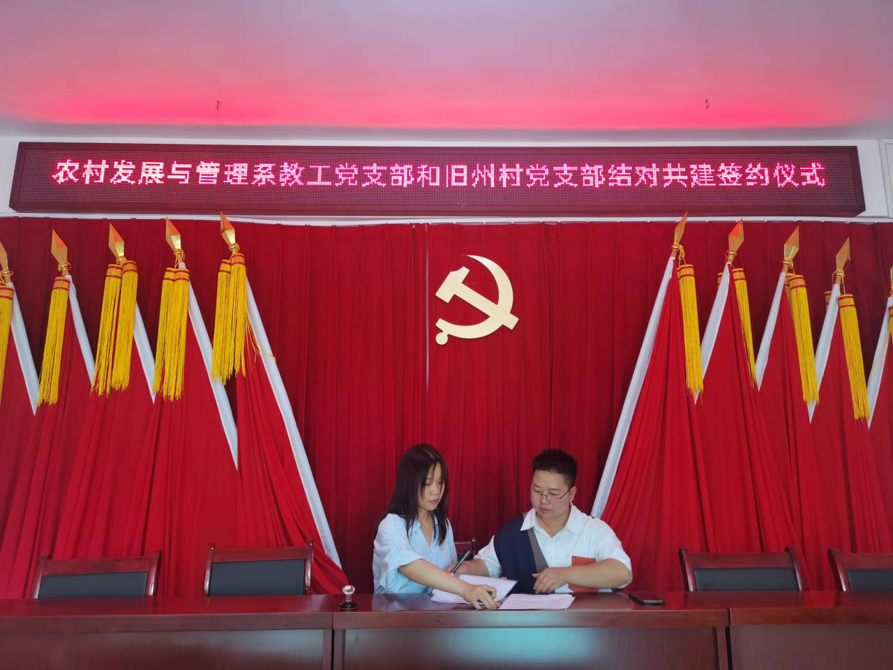 仪式上,农村发展与管理系教工党支部发出结对共建倡议,双方就党建共建、人才培养、产业发展、文化服务等方面的合作事宜进行了深入交流,并签订了《党建共建协议书》。