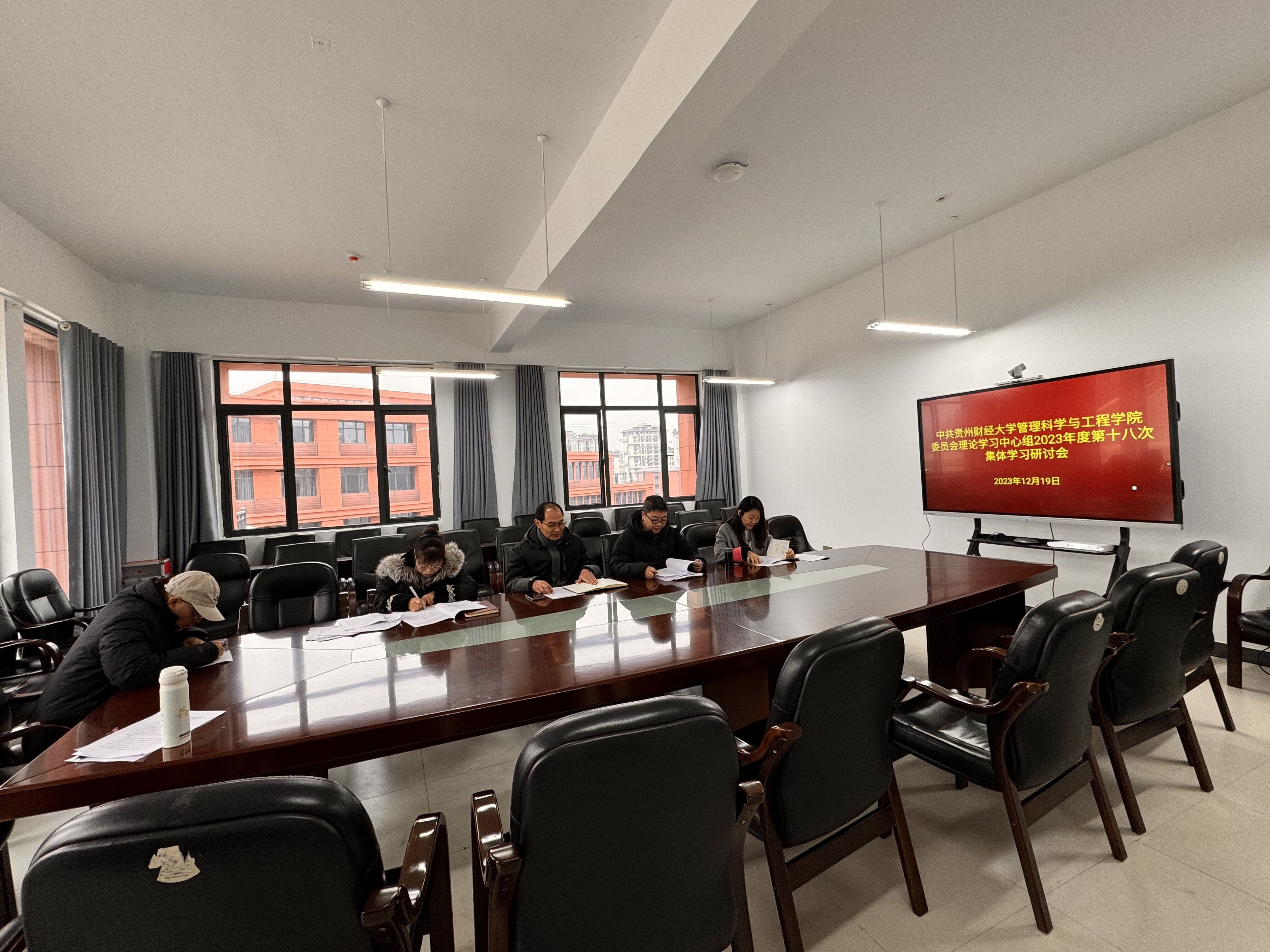 12月19日,管理科学与工程公司党委理论学习中心组2023年度第十八次集体学习研讨会在文溯楼509会议室召开。参加会议的有公司党委书记邵新顺,党委副书记高艳妮,党委委员、副经理魏媛,经理郭长睿、贵州煤炭经济与管理研究院副经理李恩东列席会议,会议由邵新顺主持。