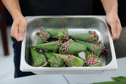 活动现场气氛热烈,师生齐心协力投入到包粽子的欢乐实践中。有的手法娴熟,有的则是初次尝试,师生们互相交流包粽经验,欢声笑语不断。包出各种独特的粽子造型。粽叶、糯米以及馅料在大家的巧手之下变成了一个个绿油油粽子。一片片粽叶包裹着糯米与祝福,一个个粽子串联起温暖与情谊。