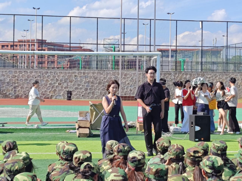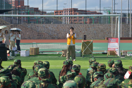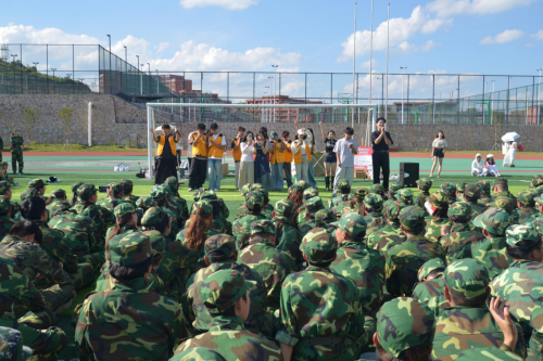 随后,院员工会文艺部的同学们献上歌曲演唱和舞蹈表演等节目,引来现场阵阵掌声。训练场上的紧张气氛逐渐被轻松愉快的互动所替代。表演结束后,公司各员工组织代表分别介绍了团委、员工会、青年志愿者协会、新媒体中心及党建中心的职能定位与品牌活动,帮助新生进一步了解公司文化及校园生活。