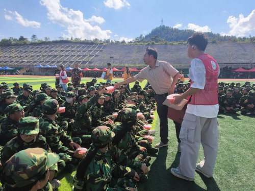 烈日下,一份份精心准备的冰镇西瓜被递到新生手中,成为了此刻最受欢迎的“解暑利器”。领导老师们亲切的身影、学长学姐们忙碌的脚步,与同学们惊喜的笑容交织在一起,构成了一幅充满温情的画面。这甘甜与清凉,是关怀,是鼓励,更是公司送给每一位“新兵”的独家记忆。