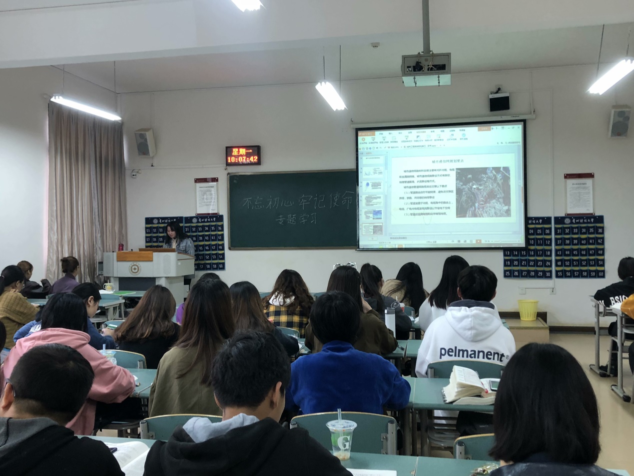 为学习并贯彻习近平新时代中国特色社会主义思想进一步引向深入,实现思想理论进步和思想武装进步同步发展。2019年10月24日17级人文地理与城乡规划班全体成员在崇德楼2-16开展第三次专题教育学习。本次专题学习由邓春兰主持。