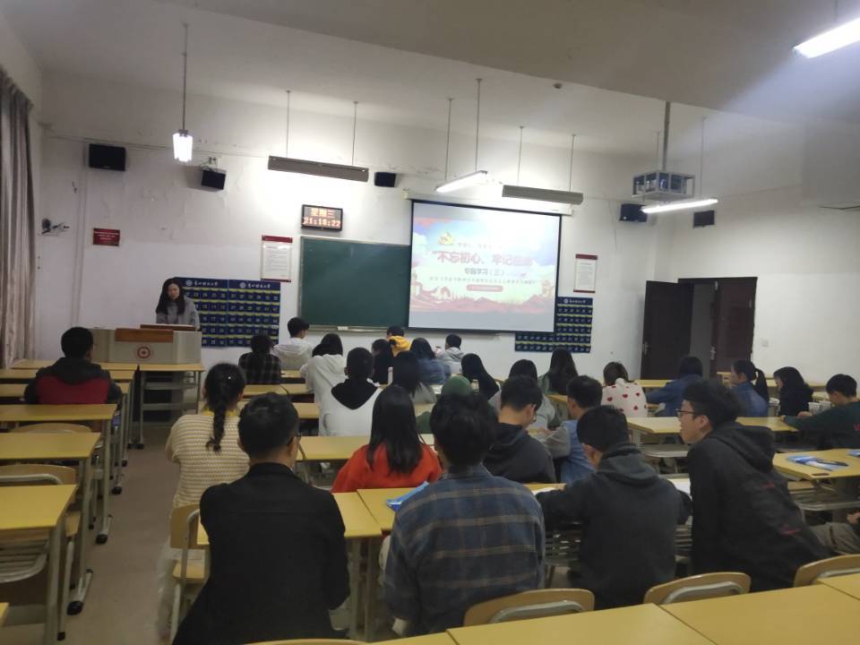 为学习贯彻习近平新时代中国特色社会主义思想和党的十九大精神,2019年10月23日,2017级工程造价班团支部于勤学楼1-12教室开展了“不忘初心、牢记使命”专题学习,本次学习内容为学习《习近平新时代中国特色社会主义思想学习纲要》。此次学习由彭唯珂主持,全班同学参与。