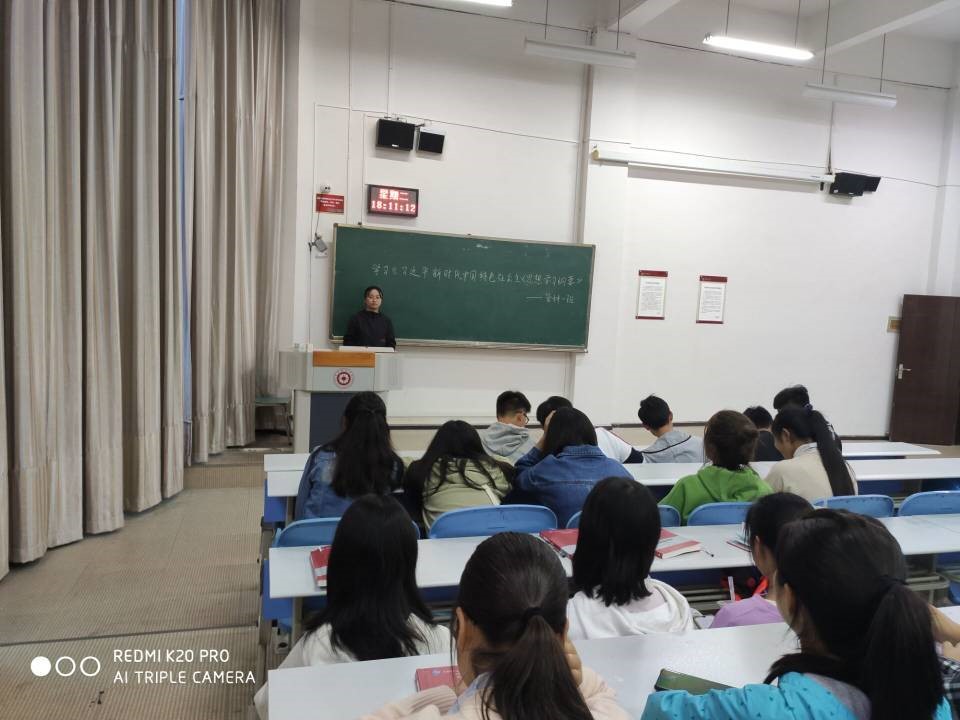 为把学习贯彻习近平新时代中国特色社会主义思想进一步引向深入,强化团员的政治思想意识,引导同学们增强“四个意识”、坚定“四个自信”、做到“两个维护”。2019级bevictor伟德官网一班团支部于2019年10月22日进学楼1-3阶梯教室召开了学习《习近平新时代中国特色社会主义思想纲要》专题活动。此次活动由团支部书记韩笑同学主持,全体同学参加。