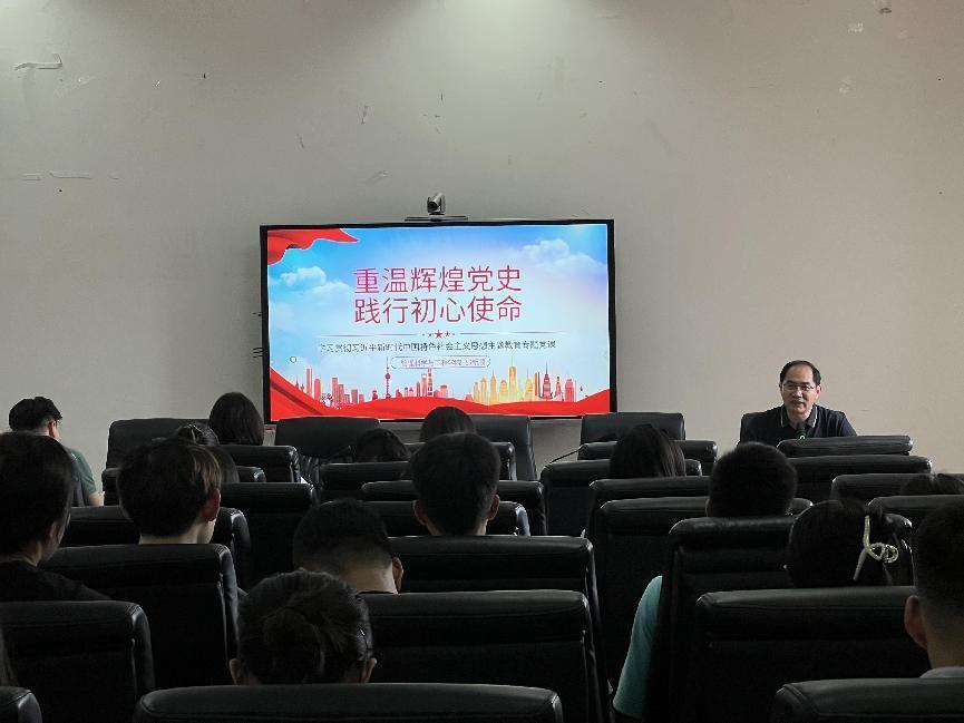 6月26日下午,管理科学与工程公司党委书记邵新顺在正德楼301以《重温辉煌党史 践行初心使命》为题讲授专题党课。公司党委委员、副董事长肖小虹,公司主题教育第七督导组副组长贾秋玲、组员赵红亮应邀到会指导。公司党委班子成员,邵新顺同志所在党支部党员、所联系党支部党员以及公司专职组织员共同学习。